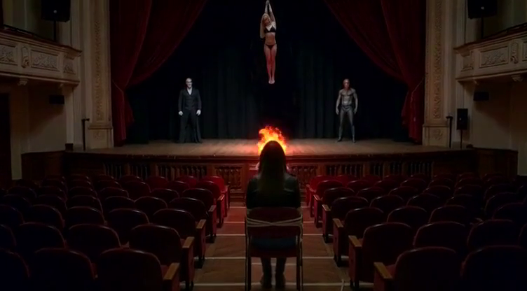 Le ruote stridevano sulla ghiaia quando la carrozza raggiunse il castello di Barlow. Dentro, il silenzio aveva il peso della paura. Aisha e Adamas furono separate: Aisha issata sul palco, appesa per i polsi sopra la bocca dell’inferno; Adamas legata a una sedia nella platea, costretta a guardare.