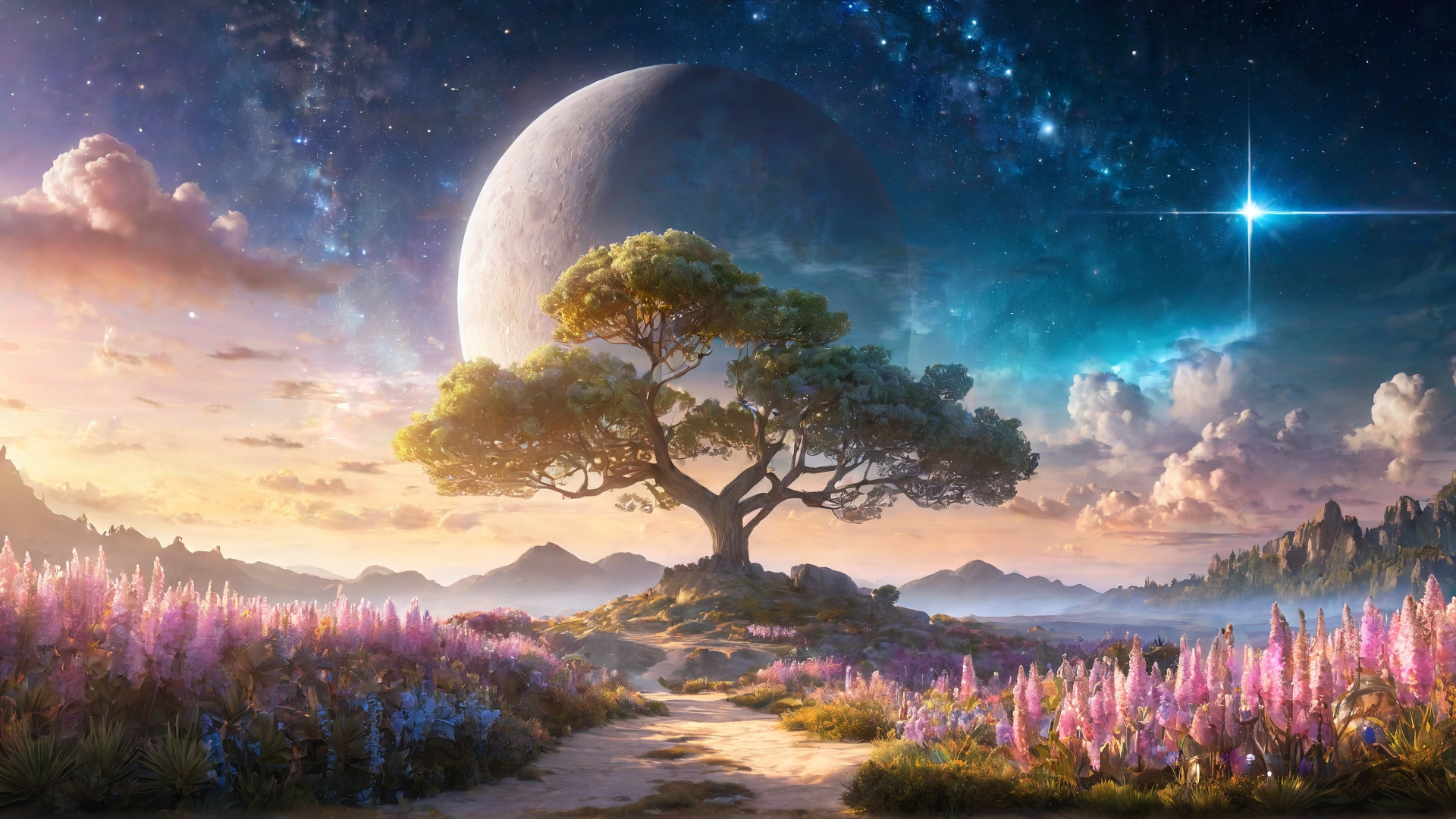 Miraluna è quieta, luminosa, normale come solo i luoghi di confine sanno essere. “La Rosa dei Venti” offre una stanza, cibo caldo e una partita di carte dove le risate di Kalki accendono il momento leggero prima del viaggio. Poi la notte si fa immobile. Nessun suono teorico, nessun annuncio: solo il vento che sembra pensare da solo. Tra gli alberi appare un uomo altissimo, scalzo, jeans consumati e una maglietta bianca che riflette appena la luce delle due lune. Non parla, ma sorride in un modo che pesa più di un dialogo: amore puro, venato da una tristezza antica, come chi sa che l’inizio non è mai facile. Quando pronuncia Aisha, non lo fa come un nome qualunque: è la pronuncia del Padre, il suono che le ha consegnato quando l’ha chiamata al mondo. Un istante, un lampo senza rumore, e il bosco si richiude di nuovo nel silenzio. Aisha si voltò verso Kalki. I loro occhi si incontrarono, ma nessuna parola fu necessaria. Tra loro passò una sensazione condivisa: qualcosa è accaduto. Rimasero sedute in silenzio. Il cielo sopra di loro tratteneva il respiro. Poterono vedere ancora per quella notte le due lune di Miraluna risplendere sul Quadrante 4, l'Illusione, ma da quel momento quella piccola sensazione sempre avuta di non essere sole... divenne molto più concreta.