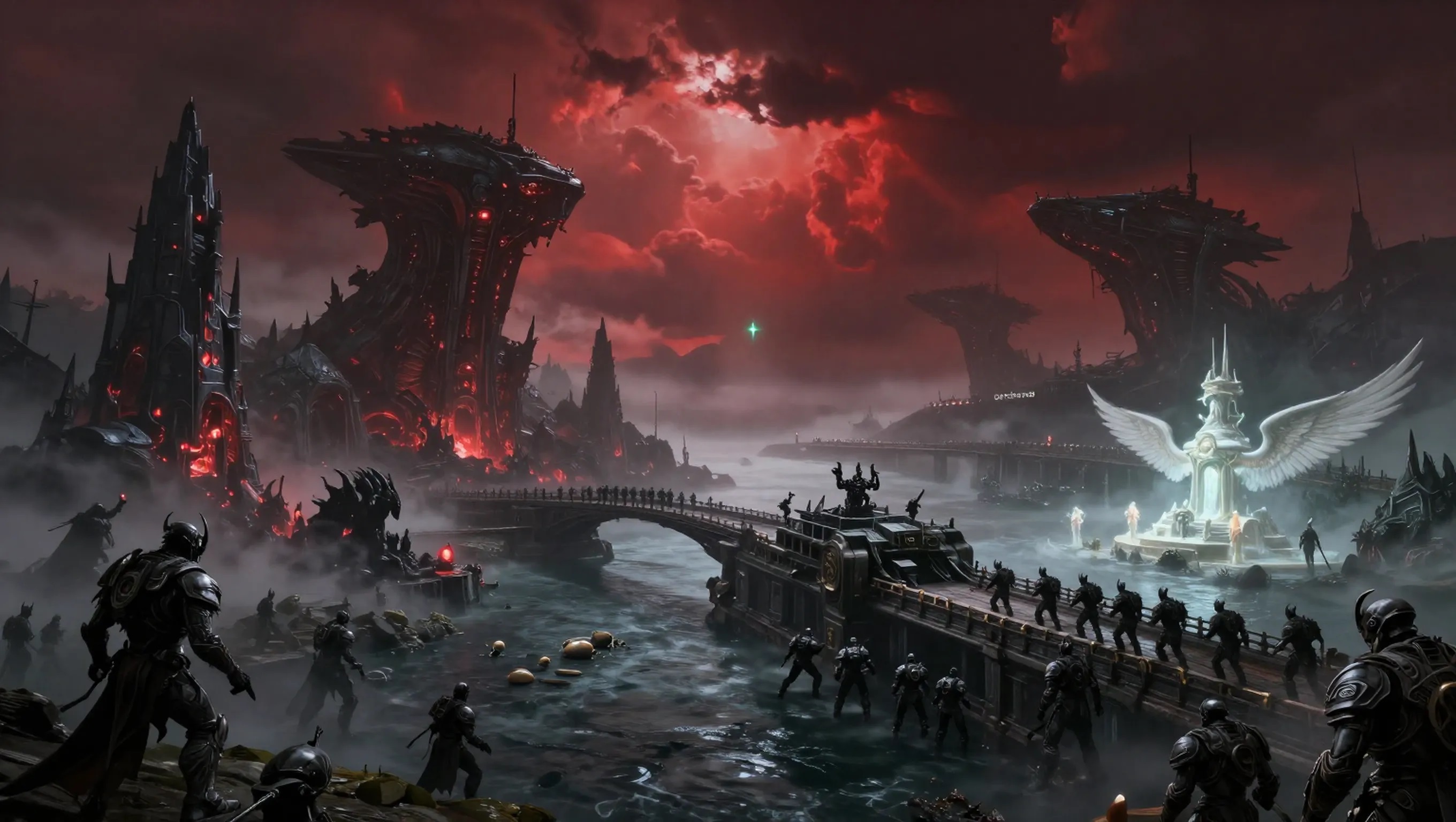 Il 5 dicembre la situazione diventa definitiva. Contingenti provenienti da Bergderbil e Heaven si distribuiscono nella città: demoni a est, angeli a ovest. I nodi logistici restano condivisi, ma le due forze mantengono una separazione evidente. Land’s End non viene trasformata in un insediamento stabile: tutte le installazioni indicano una preparazione militare per un’operazione più grande.